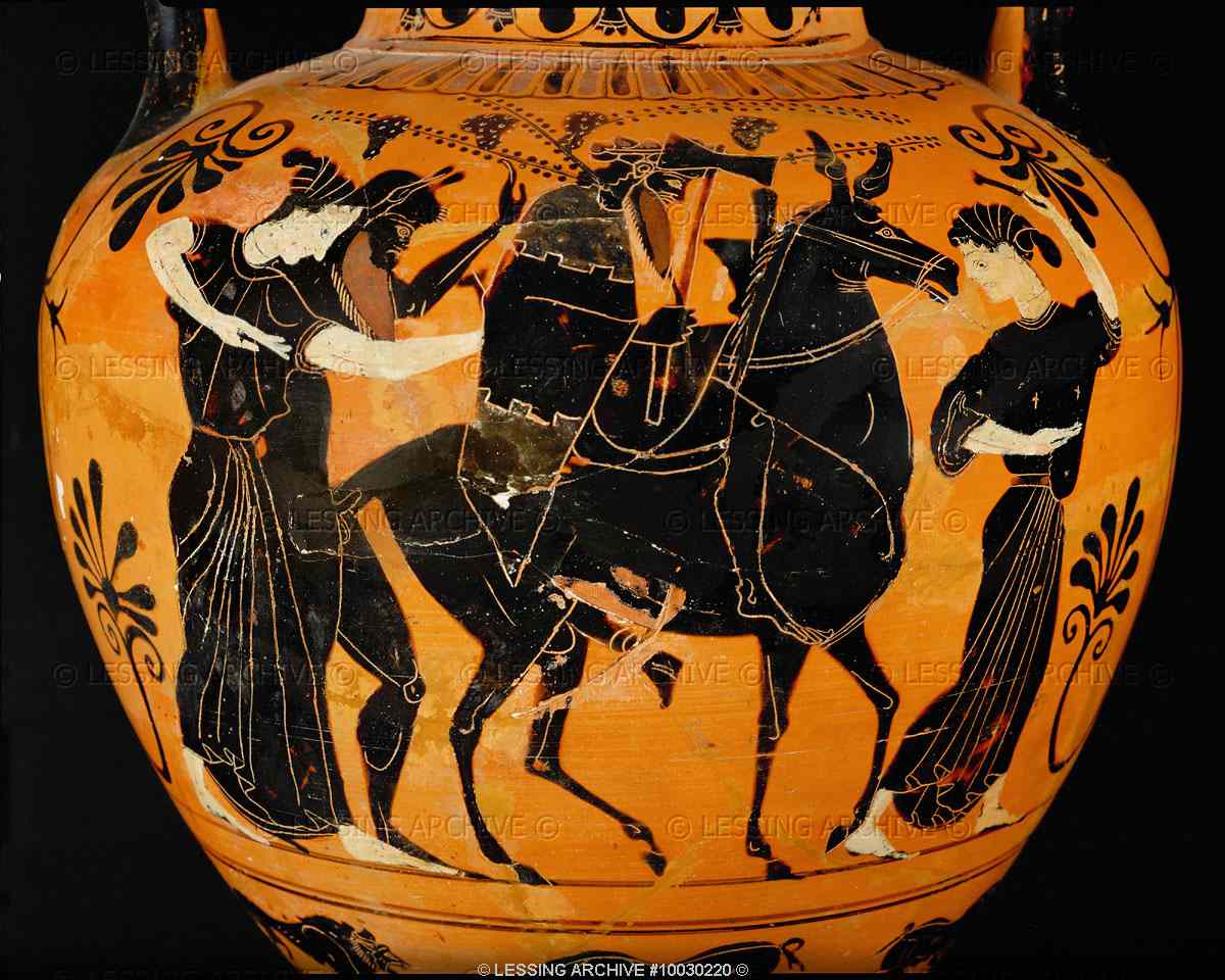 ................In Il vulcano Vesuvio si parla della sua "vita da vulcano". Qui l'attenzione è rivolta alla "montagna calda" Vesuvio: leggete e capirete. Visto dal satellite come in figura 1, il Vesuvio appare come un vulcano situato nel “giardino interno” di un vastissima comunità umana. Questa e altre immagini sono visibili sul sito Web SwissEduc . Come è vissuta questa situazione, più o meno intensamente secondo la distanza e con differenze legate alle caratteristiche e alle tradizioni locali? Con il loro fuoco, il pericolo che rappresentano, i loro misteri e i benefici che apportano, i vulcani costituiscono un caso speciale nel rapporto dell’uomo con la Natura. Il terreno vulcanico è fertile e dà sapore speciale a tutto quello che vi è prodotto. Fin dai tempi antichi essi hanno permesso lo sviluppo dell’economia, basti pensare all’importanza dell’ ossidiana di Lipari nella Preistoria e all’estensione del suo commercio. Nello stesso tempo, essi portano nelle loro viscere un pericolo incombente. Un vulcano – sia esso il Vesuvio, lo Stromboli, o altro – è intensamente amato e temuto dalle popolazioni “conviventi”, come lo è il mare dai pescatori e dai navigatori. E’ significativo che nelle tradizioni degli abitanti di un’isola-vulcano come Stromboli, esso sia personalizzato chiamandolo “ Iddu ” (Lui, in siciliano). Non c’è da stupirsi che nella Mitologia essi siano associati a una divinità e che oggi restino presenti in antichi riti delle tradizioni popolari. Natura, Animismo e Mitologia Nelle antiche credenze animistiche comunemente dette pagane, alla Natura erano associate divinità maggiori e minori. La Natura aveva un’anima. Dell’antico spirito pagano resta traccia in tradizioni di origine rurale che permangono in luoghi inaspettati e insospettabili. Nelle campagne attorno a Ginevra esiste tuttora la Festa del “Feuillu” (in italiano, fogliuto), che si tiene in maggio. Durante questa festa, appare un personaggio coperto di foglie simboleggiante la Primavera che rinasce dall’Inverno. Al limite, potremmo azzardare che l’odierna visione ecologica della Natura e del rispetto che le è dovuto richiami laicamente le originarie credenze animistiche. ..................................................... Fig. 2. L'apparizione degli spiriti naturali del pescheto Fotogramma del fllm Sogni di Akira Kurosawa - Immagine Heart Beats L’antica associazione tra Natura e sacralità è ancora viva nel tradizionale Shintoismo giapponese, che echeggia nell'apparizione degli spiriti naturali (" Kami ") nel segmento Il pescheto (figura 2) del film Sogni (1990) di Akira Kurosawa (1910-98). Lo Shintoismo - animismo della Natura - convive senza problemi in sincretismo con il Buddhismo , importato dall’Asia continentale. Nella Mitologia greca la visione sacrale del rapporto dell‘uomo con la Natura assume una struttura organica, e le divinità greche si integrarono senza troppi problemi con quelle latine grazie ai comuni riferimenti alla Natura. Gli Dei avevano le imprevedibilità della Natura nonché le passioni e bizzarrie degli esseri umani, e non disdegnavano scendere dal loro Olimpo. La Natura può essere benevola con gli uomini ma anche arrabbiarsi furiosamente ossia - dal punto di vista animistico – punirli. Così fanno gli Dei della Mitologia Greca. Zeus (Giove per i Latini), signore dell'Olimpo e Dio del cielo, puniva con la folgore. Non mancano fuoco e vulcanismo. Vulcanismo ed Efesto Il Dio del fuoco, dei fabbri e degli artigiani è Efesto (Vulcano per i Latini). Il fuoco è indispensabile nella vita quotidiana (a cominciare dal primo caffè della mattina, diremmo oggi) e permette di forgiare utensili. Ma il fuoco può anche erompere disastrosamente dai vulcani, come lo sterminator Vesevo di Giacomo Leopardi. Fig. 3. Efesto ritorna all’Olimpo cavalcando un asino e con in mano un martello Anfora attica a figure nere (VI secolo a.C.), Kunsthistorisiches Museum, Vienna Immagine Viatico de Vagamundo - Clic per Alta Definizione Efesto era figlio di Zeus e Hera. Zeus aveva una forte invidia per la sua abilità nel forgiare col fuoco armi e strumenti e in generale come artigiano. Nel corso di una delle liti tra Zeus ed Hera, Efesto intervenne in difesa della madre. Zeus, già mal predisposto, lo gettò giù dall’Olimpo senza troppi complimenti. La rovinosa caduta lo fece atterrare sull'isola di Lemno, ove si ritrovò con un piede storpiato. Lì acquisì una straordinaria abilità nel forgiare armi, lavorare metalli e creare bellissimi gioielli. Riconoscendo la sua capacità di creare bellezza, Hera lo perdonò per non essere ciò che aveva sperato e convinse Zeus a richiamarlo all’Olimpo. Così Zeus mandò Dioniso, fratello di Efesto, a inebriarlo con il vino per convincerlo a farlo tornare. Efesto lo fece accompagnato da Dioniso e cavalcando un asino. Il trionfale ritorno di Efesto all’Olimpo era un argomento preferito dell’ iconografia di epoca arcaica, come mostrato in figura 3. Tornato tra gli Dei dell'Olimpo, Efesto visse lavorando indisturbato come artigiano nell’ambiente infuocato della sua attrezzatissima fucina sotterranea, nella quale lo raffigura solitamente la tarda iconografia. La fertile montagna e Dioniso Come detto in Il Vesuvio , l’eruzione del 79 d.C. fu preceduta da un lunghissimo periodo di sostanziale quiescenza. La sua natura vulcanica era caduta nell’oblio. Dell’antico vulcano era restato quello che è ora chiamato Monte Somma. La grande fertilità del terreno vulcanico era diventata la caratteristica dominante della “montagna”, che veniva sovente associata a Dioniso (divinità del vino e della vegetazione, assimilato alla divinità romana Bacco) piuttosto che a Efesto (Vulcano per i romani). Otto anni dopo l’eruzione, Marco Valerio Marziale (40-104 d.C.) scrisse in uno dei suoi Epigrammi (V, 44):
